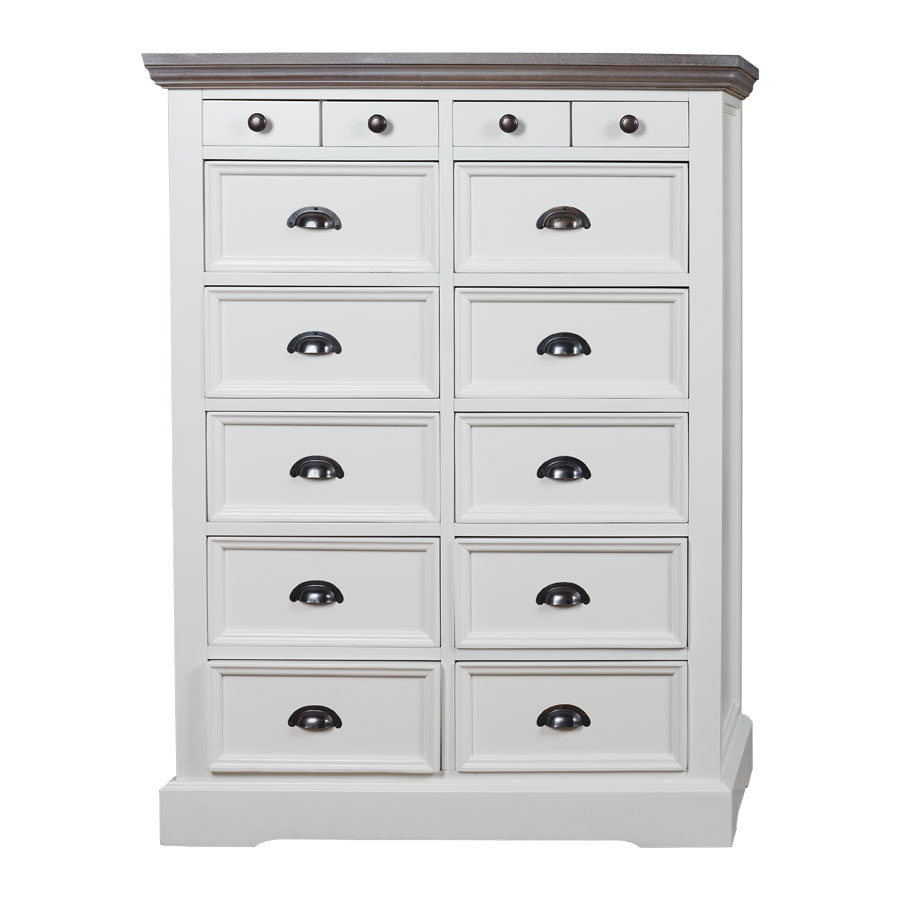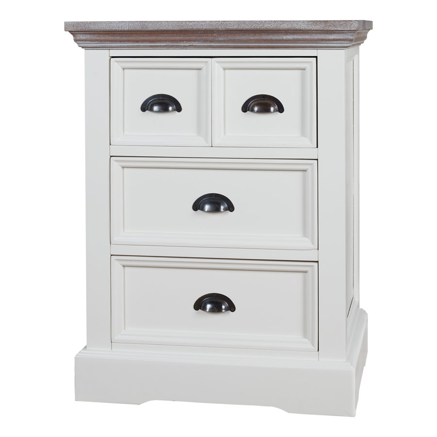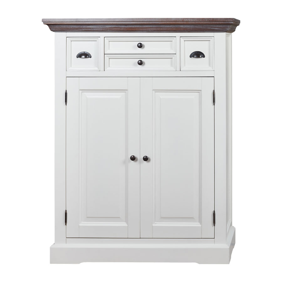 Colectia Fleur se incadreaza perfect intr-un cadru rustic sau pentru iubitorii de mobilier cu accent romantic. Programul este format din mobilier alb pe structura de rasinos cu MDF. Se evidenteaza prin fronturile respectiv blaturile realizate din lemn de brad periat. Finisajul utilizat este unul complex, realizat manual, in 6 etape pentru obtinerea unui efect vintage: dupa periere se aplica baitul, urmat de o slefuire usoara, apoi se utilizeaza patina de culoare alba urmata de o a doua slefuire usoara si aplicarea stratului final - lac mat de protectie.